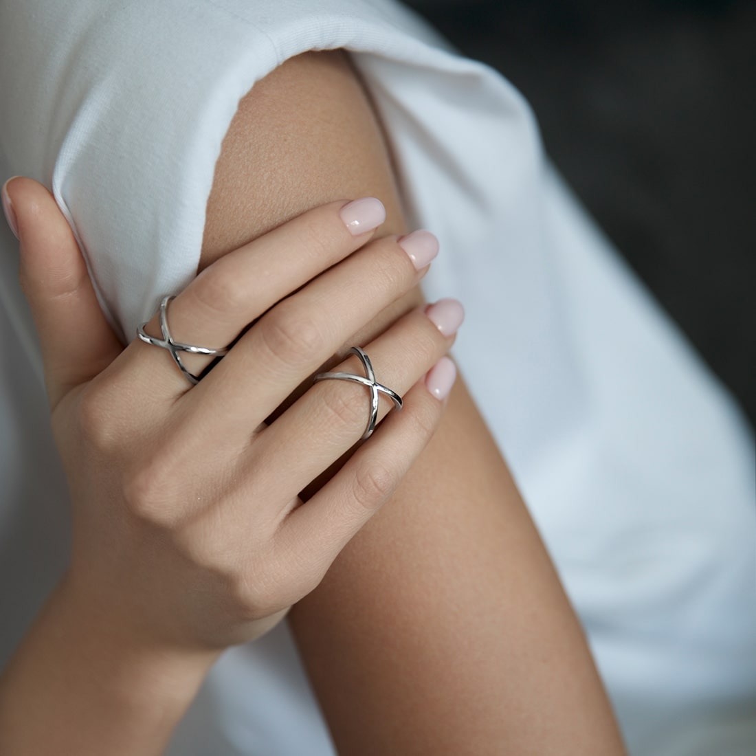 Миди-кольцо "Икс" на фалангу пальца - классика для повседневного стиля. Кстати, самый удобный способ носить миди-кольцо - это носить его на фаланге безымянного пальца - он наименее задействован в мелкой моторике.